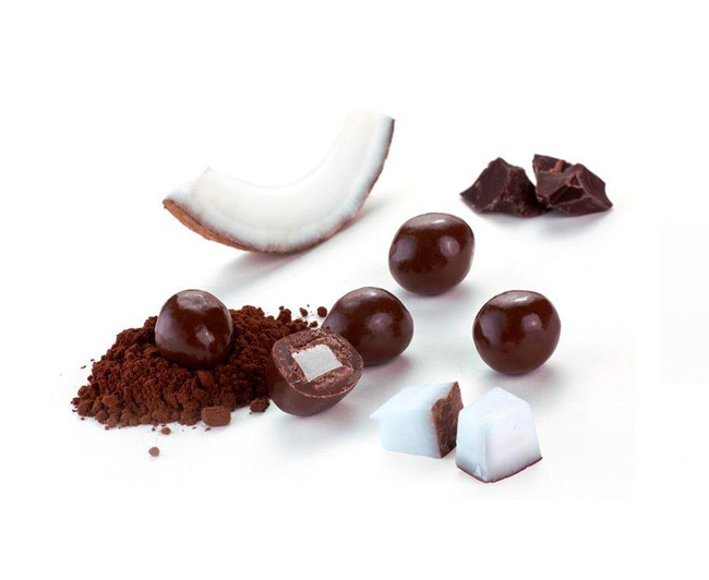 Gustosi cubetti di cocco ricoperti di pregiato cioccolato al latte